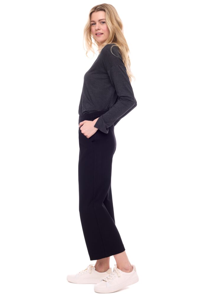 Featuring a breezy wide leg and a cropped length, this pant will become your go-to for casual ease. It’s cut from a rich Ponte fabric that flows beautifully around the body, and features a body-shaping slip-on waistband that flattens and smooths in complete comfort. Balance the proportions with a slim top or a tucked in blouse, add a stacked loafer or a minimal heel, and you’re set for a season in style.